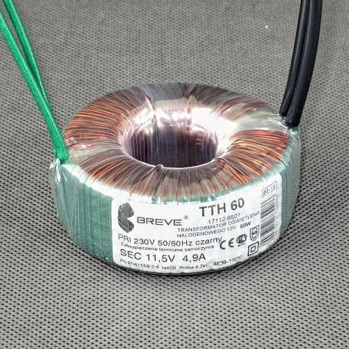Transformator TTH 60 230/11.5V toroidalny do 12 woltowych żarówek halogenowych z bezpiecznikiem termicznym 17112-9501 Breve